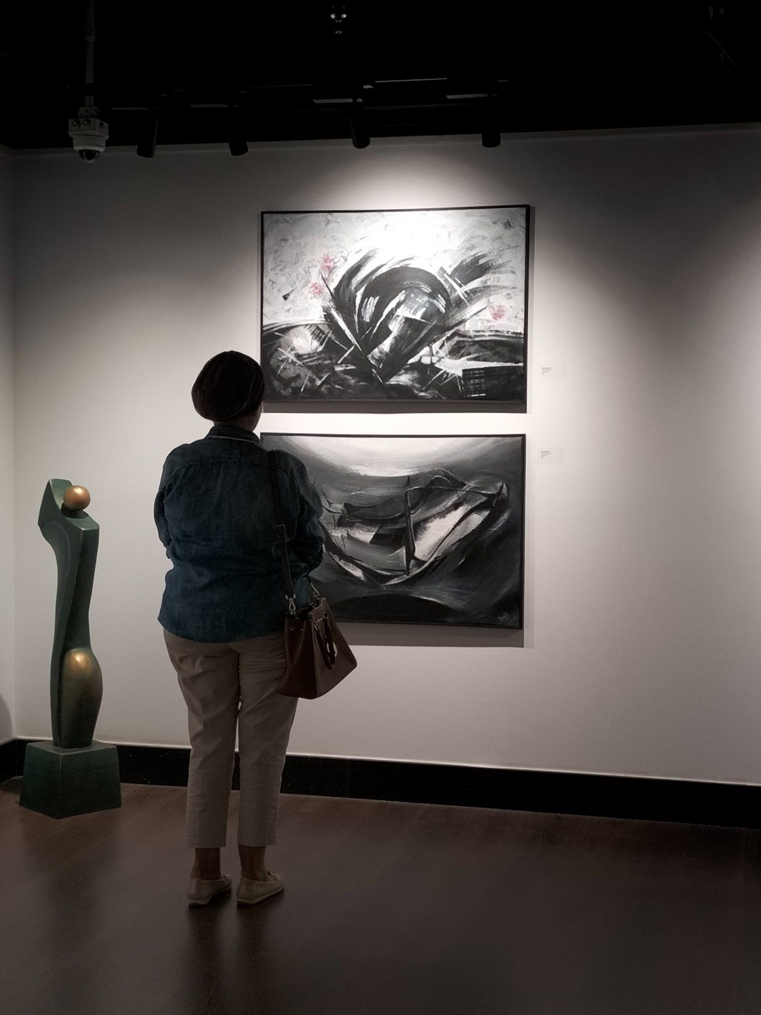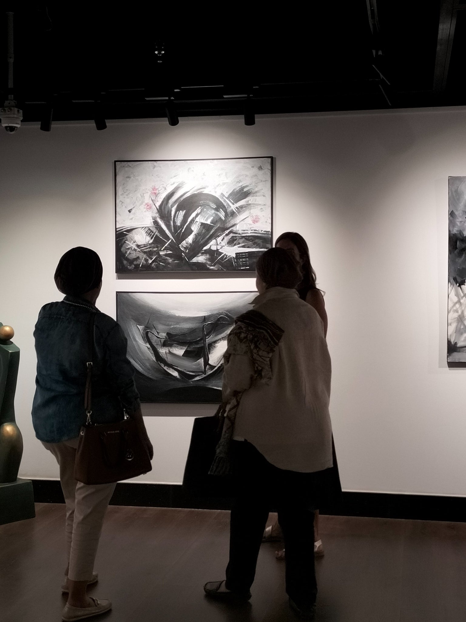 من الظلمات إلى النور… رحلة فنية جماعية لأكثر من عشرون فنانا تجمع ما بين اللوحات و أعمال النحت و تعكس لحظات الصراع، الصحوة، والتحول الداخلي. بالأبيض والأسود ولمسات من الأحمر.